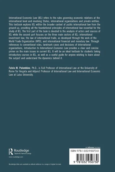 International Economic Law (IEL) refers to the rules governing economic relations at the international level and involving States, international organizations and private entities. This textbook explores IEL within the broader context of public international law from the ground up, providing all the foundational principles of international law essential for the study of IEL. The first part of the book is devoted to the analysis of actors and sources of IEL while the second part focuses on the three main sectors of IEL: international investment law, the law of international trade, as developed through the work of the World Trade Organization (WTO), and international financial and monetary law. Through references to conventional rules, landmark cases and decisions of international organizations, Introduction to International Economic Law provides a clear and concise primer on the main issues in current IEL. It will be an ideal textbook for students taking introductory courses in IEL, as well as a useful guide for anyone wishing to learn about the subject and understand the dynamics behind it.