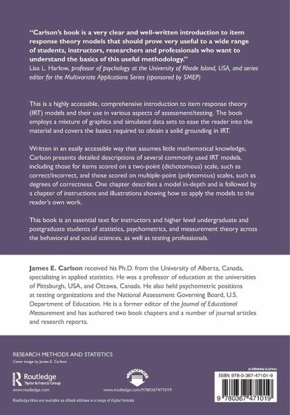 "Carlson's book is a very clear and well-written introduction to item response theory models that should prove very useful to a wide range of students, instructors, researchers and professionals who want to understand the basics of this useful methodology." -- Lisa L. Harlow, professor of psychology at the University of Rhode Island, USA, and series editor for the Multivariate Applications Series (sponsored by SMEP).