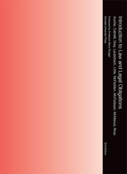 Introduction to Law and Legal Obligations, now in its second edition, is an invaluable text for students. It provides up-to-date and comprehensive coverage and is the ideal resource for students studying Scots law or related courses. Each chapter includes a useful summary section to help students identify and remember key elements - an excellent and time-saving aid to revision. Written by a team of experienced academics, Introduction to Law and Legal Obligations is ideally suited to those studying for the BA degree in law, the Higher National Certificate and the Certificate for Higher Education. Students of accountancy and business studies courses containing law elements will also find the book essential. Contents: Sources of Scots Law Scottish Legal System Constitutional Law Delict Contract Dispute Resolution Employment Law Company Law Intellectual Property The Authors: Derek Auchie, Lecturer in Law Robert Gordon University David Cabrelli, Lecturer in Law University of Edinburgh Thorsten Lauterbach, Lecturer in Law Robert Gordon University Tikus Little, Teaching Fellow University of Stirling Jean McFadden, Senior Lecturer in Law University of Strathclyde Dale McFadzean, Lecturer in Law University of the West of Scotland Frank McManus, Professor of Law Napier University Jenifer Ross, Senior Lecturer in Law University of Strathclyde 2nd Edition [DUP logo] Cover design: Various Creative
