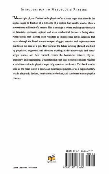 "Mesoscopic physics" refers to the physics of structures larger than a nanometer (one billionth of a meter) but smaller than a micrometer (one millionth of a meter). This size range is the stage on which the exciting new research on submicroscopic and electronic and mechanical devices is being done. This research often crosses the boundary between physics and engineering, since engineering such tiny electronic components (as many as one million transistors can be fitted onto a single chip) requires a firm grasp of quantum physics. Applications for the future may include such wonders as microscopic robot surgeons that will travel through the blood stream to repair clogged arteries; submicroscopic actuators and builders; and supercomputers that fit on the head of a pin.