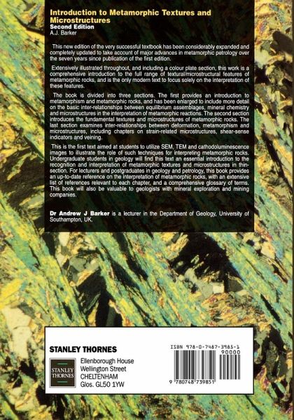 A text which aims to help undergraduate students in geology to recognize and interpret metamorphic textures and microstructures in thin-section. For lecturers and postgraduates in geology and petrology, the book provides reference for the interpretation of metamorphic rocks.