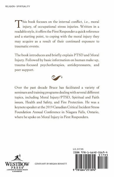 This book focuses on the internal conflict, i.e., moral injury, of occupational stress injuries. Written in a readable style, it offers the First Responder a quick reference and a starting point, to coping with the moral injury they may acquire as a result of their continued exposure to traumatic events. The book introduces and briefly explain PTSD and Moral Injury. Followed by basic information on human make up, trauma-focused psychotherapies, antidepressants, and peer support.