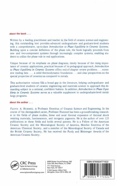 This book provides a comprehensive, up-to-date introduction to phase equilibria in ceramic systems. It logically proceeds from one- and two-component systems through increasingly complex systems, enabling students to utilize the phase rule in real application.