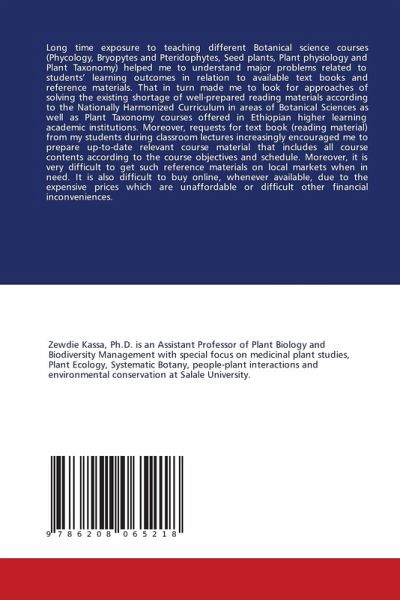 Long time exposure to teaching different Botanical science courses (Phycology, Bryopytes and Pteridophytes, Seed plants, Plant physiology and Plant Taxonomy) helped me to understand major problems related to students' learning outcomes in relation to available text books and reference materials. That in turn made me to look for approaches of solving the existing shortage of well-prepared reading materials according to the Nationally Harmonized Curriculum in areas of Botanical Sciences as well as Plant Taxonomy courses offered in Ethiopian higher learning academic institutions. Moreover, requests for text book (reading material) from my students during classroom lectures increasingly encouraged me to prepare up-to-date relevant course material that includes all course contents according to the course objectives and schedule. Moreover, it is very difficult to get such reference materials on local markets when in need. It is also difficult to buy online, whenever available, due to the expensive prices which are unaffordable or difficult other financial inconveniences.