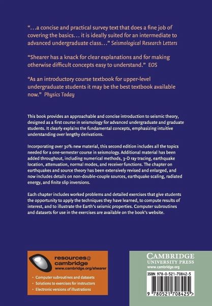 This book provides an approachable and concise introduction to seismic theory, designed as a first course for undergraduate students. It clearly explains the fundamental concepts, emphasizing intuitive understanding over lengthy derivations. Incorporating over 30% new material, this second edition includes all the topics needed for a one-semester course in seismology. Additional material has been added throughout including numerical methods, 3-D ray tracing, earthquake location, attenuation, normal modes, and receiver functions. The chapter on earthquakes and source theory has been extensively revised and enlarged, and now includes details on non-double-couple sources, earthquake scaling, radiated energy, and finite slip inversions. Each chapter includes worked problems and detailed exercises that give students the opportunity to apply the techniques they have learned to compute results of interest and to illustrate the Earth's seismic properties. Computer subroutines and datasets for use in the exercises are available at www.cambridge.org/shearer.
