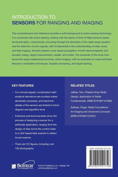 Key Features Include: a[ Extensive use of worked examples based on sensors that the author has developed or worked on during the past 28 years. a[ Examples are featured that illustrate the process of designing a sensor for a particular application, ranging from such diverse topics as the design of a ship-borne fire control radar to a UAV based lidar scanner to detect locust swarms. a[ For a broader appeal, complicated mathematical derivations are avoided unless absolutely necessary, and electronic details of the sensors are limited to block diagram and algorithm level. a[ There are 572 figures of which about 20% are photographs, the remainder drawings with 25 tables.