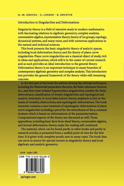 "This monograph is dedicated to the theory of singularities, a subject with a central role in modern mathematics. ... This very well written book has a unified point of view based on the theory of analytic spaces, which allows a coherent presentation of both of its main themes: the theory of singularities and deformations of singularities. ... The book includes many examples and exercises ... . This monograph can serve as a source for several special courses in singularity theory and local analytic geometry." (Vasile Brînzanescu, Mathematical Reviews, Issue 2008 b)