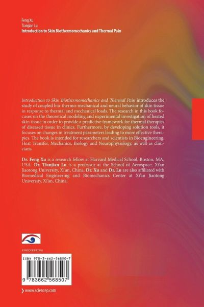 "Introduction to Skin Biothermomechanics and Thermal Pain" introduces the study of coupled bio-thermo-mechanical and neural behavior of skin tissue in response to thermal and mechanical loads. The research in this book focuses on the theoretical modeling and experimental investigation of heated skin tissue in order to provide a predictive framework for thermal therapies of diseased tissue in clinics. Furthermore, by developing solution tools, it focuses on changes in treatment parameters leading to more effective therapies. The book is intended for researchers and scientists in Bioengineering, Heat Transfer, Mechanics, Biology and Neurophysiology, as well as clinicians. Dr. Feng Xu is a research fellow at Harvard Medical School, Boston, MA, USA. Dr. Tianjian Lu is a professor at the School of Aerospace, Xi'an Jiaotong University, Xi'an, China. Dr. Xu and Dr. Lu are also affiliated with Biomedical Engineering and Biomechanics Center at Xi'an Jiaotong University, Xi'an, China.