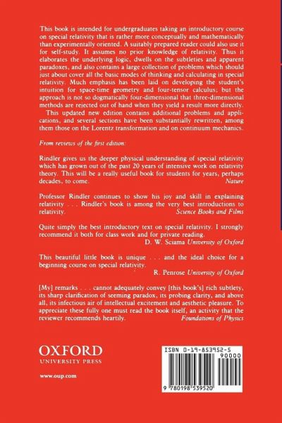 This book is intended for undergraduates taking an introductory course on special relativity which is rather more conceptually and mathematically than experimentally orientated. A suitably prepared reader could use it for self-study. It assumes no prior knowledge of relativity. Thus it elaborates the underlying logic, dwells on the subleties and apparent paradoxes, and also contains a large collection of problems which should just about cover all the basic modes of thinking and calculating in special relativity. Much emphasis has been laid on developing the student's intuition for space-time geometry and four-tensor calculus; but the approach is not so dogmatically four-dimensional that three-dimensional methods are rejected our of hand when they yield a result more directly. This updated new edition contains additional examples and problems, and the chapter on relativistic mechanics of continua has been substantially rewritten.