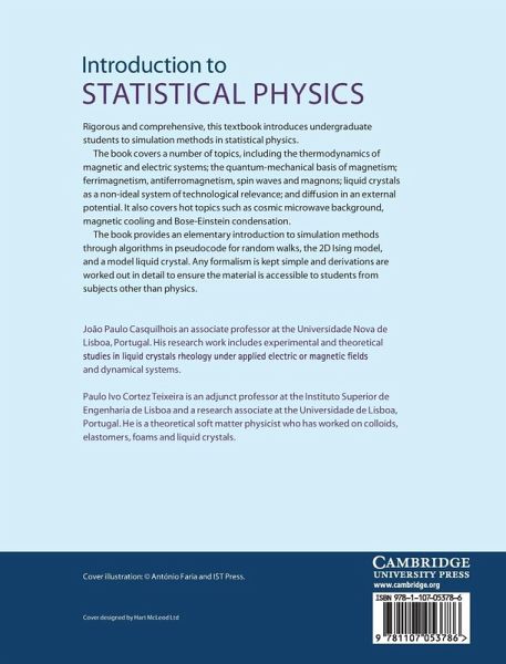Rigorous and comprehensive, this textbook introduces undergraduate students to simulation methods in statistical physics. The book covers a number of topics, including the thermodynamics of magnetic and electric systems; the quantum-mechanical basis of magnetism; ferrimagnetism, antiferromagnetism, spin waves and magnons; liquid crystals as a non-ideal system of technological relevance; and diffusion in an external potential. It also covers hot topics such as cosmic microwave background, magnetic cooling and Bose-Einstein condensation. The book provides an elementary introduction to simulation methods through algorithms in pseudocode for random walks, the 2D Ising model, and a model liquid crystal. Any formalism is kept simple and derivations are worked out in detail to ensure the material is accessible to students from subjects other than physics.
