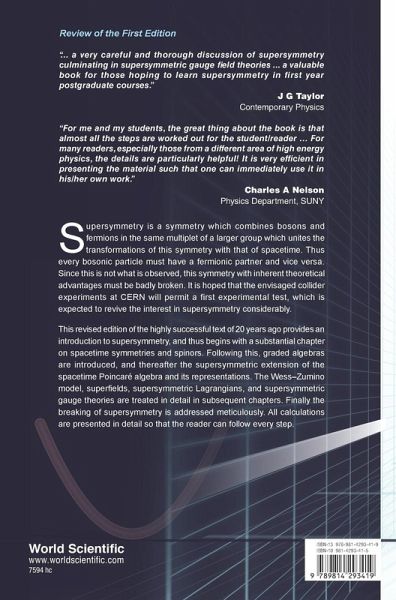 Supersymmetry is a symmetry which combines bosons and fermions in the same multiplet of a larger group which unites the transformations of this symmetry with that of spacetime. Thus every bosonic particle must have a fermionic partner and vice versa. Since this is not what is observed, this symmetry with inherent theoretical advantages must be badly broken. It is hoped that the envisaged collider experiments at CERN will permit a first experimental test, which is expected to revive the interest in supersymmetry considerably. This revised edition of the highly successful text of 20 years ago provides an introduction to supersymmetry, and thus begins with a substantial chapter on spacetime symmetries and spinors. Following this, graded algebras are introduced, and thereafter the supersymmetric extension of the spacetime Poincar algebra and its representations. The WessZumino model, superfields, supersymmetric Lagrangians, and supersymmetric gauge theories are treated in detail in subsequent chapters. Finally the breaking of supersymmetry is addressed meticulously. All calculations are presented in detail so that the reader can follow every step.