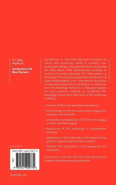 Terahertz (THz) radiation, which is electromagnetic radiation in a frequency int- val from 0.3 to 10 THz (1 mm-30 ?m wavelength), is the next frontier in science and technology. This band occupies a large portion of the electromagnetic sp- trum between the infrared and microwave bands. Basic research, new initiatives, and developments in advanced sensing and imaging technology with regard to the THz band remain unexplored compared to the relatively well-developed science and technology in the microwave and optical frequencies. Historically, THz technologies were used mainly within the…mehr