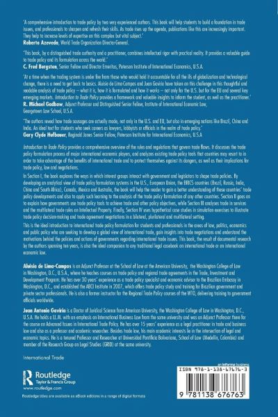 Aluisio de Lima-Campos is an Adjunct Professor at the School of Law at the American University, Washington, D.C., U.S.A., where he teaches courses on trade policy and regional trade agreements in the Trade, Investment and Development Program. He has over 30 years' experience as a trade policy specialist and economic advisor to the Brazilian Embassy in Washington, D.C., and established the ABCI Institute in 2007, which offers trade policy study and training for Brazilian government and private sector professionals. He is also a former instructor for the Regional Trade Policy courses of the WTO, delivering training to government officials worldwide. Juan Antonio Gaviria is a Doctor of Juridical Science from American University, the Washington College of Law in Washington, D.C., U.S.A. He holds a LL.M. with an emphasis on International Business Law from the same university and was an Adjunct Professor there for the course on Advanced Issues in International Trade Policy. He has over 15 years' experience as a legal practitioner in trade and business law and also as a professor and academic researcher. Besides trade law, his main academic interests lie in the intersection of legal and economic topics. He is a tenured Professor and Researcher at Universidad Pontificia Bolivariana, School of Law (Medellín, Colombia) and member of the Research Group on Legal Studies (GRID) at the same university.