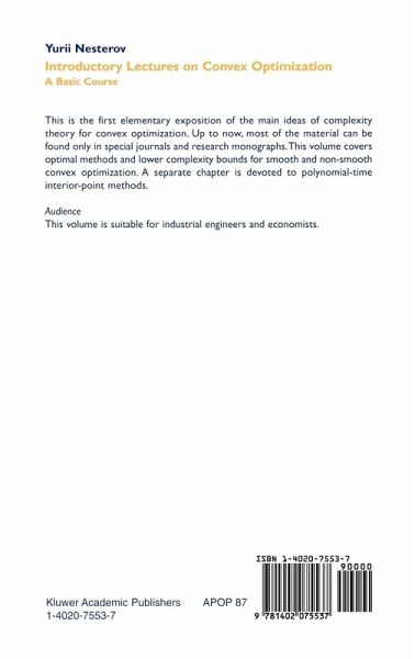 It was in the middle of the 1980s, when the seminal paper by Kar markar opened a new epoch in nonlinear optimization. The importance of this paper, containing a new polynomial-time algorithm for linear op timization problems, was not only in its complexity bound. At that time, the most surprising feature of this algorithm was that the theoretical pre diction of its high efficiency was supported by excellent computational results. This unusual fact dramatically changed the style and direc tions of the research in nonlinear optimization. Thereafter it became more and more common that the new methods were provided with a complexity analysis, which was considered a better justification of their efficiency than computational experiments. In a new rapidly develop ing field, which got the name "polynomial-time interior-point methods", such a justification was obligatory. Afteralmost fifteen years of intensive research, the main results of this development started to appear in monographs[12, 14, 16, 17, 18, 19]. Approximately at that time the author was asked to prepare a new course on nonlinear optimization for graduate students. The idea was to create a course which would reflect the new developments in the field. Actually, this was a major challenge. At the time only the theory of interior-point methods for linear optimization was polished enough to be explained to students. The general theory of self-concordant functions had appeared in print only once in the form of research monograph [12].