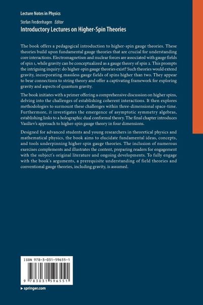 The book offers a pedagogical introduction to higher-spin gauge theories. These theories build upon fundamental gauge theories that are crucial for understanding core interactions. Electromagnetism and nuclear forces are associated with gauge fields of spin 1, while gravity can be conceptualized as a gauge theory of spin 2. This prompts the intriguing inquiry: do higher-spin gauge theories exist? Such theories would extend gravity, incorporating massless gauge fields of spins higher than two. They appear to bear connections to string theory and offer a captivating framework for exploring gravity and aspects of quantum gravity.