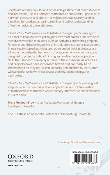 Sport is a wildly popular and accessible pastime that most students find interest in. The link between mathematics and sports - particularly between statistics and sports - is well known, but is rarely used as a method for sparking a real interest and better understanding of mathematics at university level. Introductory Mathematics and Statistics through Sports develops this connection, and uses sport as a tool to help students get to grips with mathematics and statistics. It contains valuable resources, such as activities and writing projects for use in quantitative reasoning or introductory statistics classrooms. These inquiry-based activities and open-ended writing projects are all set in the authentic framework of a sporting environment and are designed to promote critical thinking and mathematical application skills that students can apply outside of the classroom. All activities and projects have been classroom-tested and are ready to be implemented as they are, or can be easily personalized by instructors with a helpful run-down of successes and misunderstandings for each project. Introductory Mathematics and Statistics through Sports places great emphasis on the communication, application, and internalization of mathematics for students whose primary interests are not necessarily in STEM fields.
