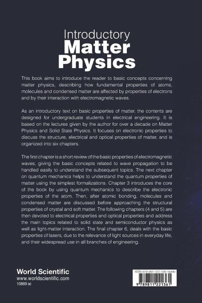 This book aims to introduce the reader to basic concepts concerning matter physics, describing how fundamental properties of atoms, molecules and condensed matter are affected by properties of electrons and by their interaction with electromagnetic waves. As an introductory text on basic properties of matter, the contents are designed for undergraduate students in electrical engineering. It is based on the lectures given by the author for over a decade on Matter Physics and Solid State Physics. It focuses on electronic properties to discuss the structure, electrical and optical properties of matter, and is organized into six chapters. The first chapter is a short review of the basic properties of electromagnetic waves, giving the basic concepts related to wave propagation to be handled easily to understand the subsequent topics. The next chapter on quantum mechanics helps to understand the quantum properties of matter using the simplest formalizations. Chapter 3 introduces the core of the book by using quantum mechanics to describe the electronic properties of the atom. Then, after atomic bonding, molecules and condensed matter are discussed before approaching the structural properties of crystal and soft matter. The following chapters (4 and 5) are then devoted to electrical properties and optical properties and address the main topics related to solid state and semiconductor physics as well as light-matter interaction. The final chapter 6, deals with the basic properties of lasers, due to the relevance of light sources in everyday life, and their widespread use in all branches of engineering.
