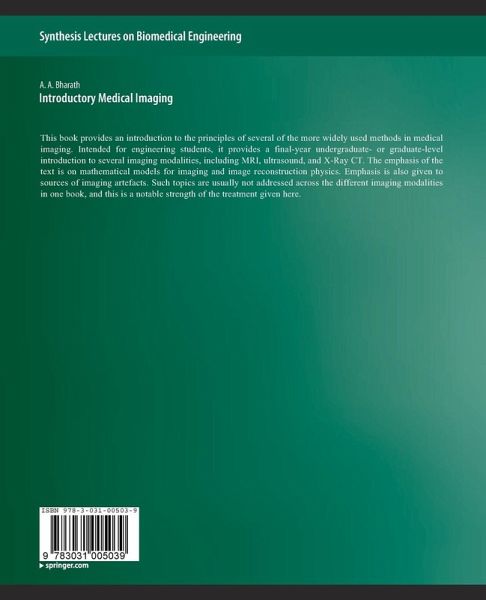 This book provides an introduction to the principles of several of the more widely used methods in medical imaging. Intended for engineering students, it provides a final-year undergraduate- or graduate-level introduction to several imaging modalities, including MRI, ultrasound, and X-Ray CT. The emphasis of the text is on mathematical models for imaging and image reconstruction physics. Emphasis is also given to sources of imaging artefacts. Such topics are usually not addressed across the different imaging modalities in one book, and this is a notable strength of the treatment given here. Table of Contents: Introduction / Diagnostic X-Ray Imaging / X-Ray CT / Ultrasonics / Pulse-Echo Ultrasonic Imaging / Doppler Velocimetry / An Introduction to MRI