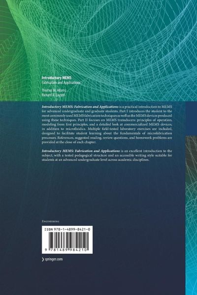 Introductory MEMS: Fabrication and Applications is a practical introduction to MEMS for advanced undergraduate and graduate students. Part I introduces the student to the most commonly used MEMS fabrication techniques as well as the MEMS devices produced using these techniques. Part II focuses on MEMS transducers: principles of operation, modeling from first principles, and a detailed look at commercialized MEMS devices, in addition to microfluidics. Multiple field-tested laboratory exercises are included, designed to facilitate student learning about the fundamentals of microfabrication processes. References, suggested reading, review questions, and homework problems are provided at the close of each chapter.