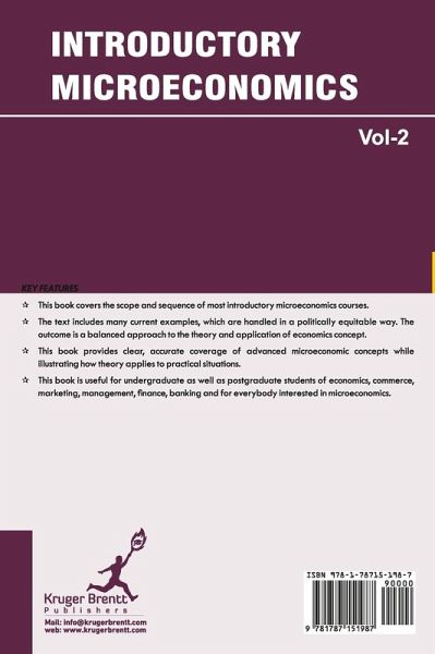 This book covers the scope and sequence of most introductory microeconomics courses. The text includes many current examples, which are handled in a politically equitable way. The outcome is a balanced approach to the theory and application of economics concept. This book provides clear, accurate coverage of advanced microeconomic concepts while illustrating how theory applies to practical situations. This book is useful for undergraduate as well as postgraduate students of economics, commerce, marketing, management, finance, banking and for everybody interested in microeconomics.