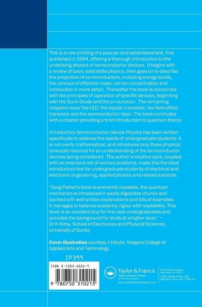Offers an introduction to the underlying physics of semiconductor devices. This work begins with a review of basic solid state physics, then describes the properties of semiconductors in more detail and examines the operation principles of the Gunn Diode and p-n junction. It concludes with a chapter giving a brief introduction to quantum theory.