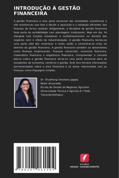 A gestão financeira é uma parte essencial das actividades económicas e não económicas que leva a decidir a aquisição e a utilização eficientes das finanças de forma rentável. Antigamente, a disciplina de gestão financeira fazia parte da contabilidade com abordagens tradicionais. Hoje em dia, foi alargada com funções inovadoras e multidimensionais no domínio dos negócios com o efeito da industrialização. A gestão financeira tornou-se uma parte vital das empresas e estas estão a concentrar-se mais no domínio da gestão financeira. A gestão financeira também se desenvolveu como finanças empresariais, finanças comerciais, economia financeira, matemática financeira e engenharia financeira. Compreender o conceito básico sobre a gestão financeira torna-se uma parte essencial para os estudantes de economia, comércio e gestão. Este livro fornece informações pormenorizadas sobre a área financeira e as áreas relacionadas com as finanças numa linguagem simples.