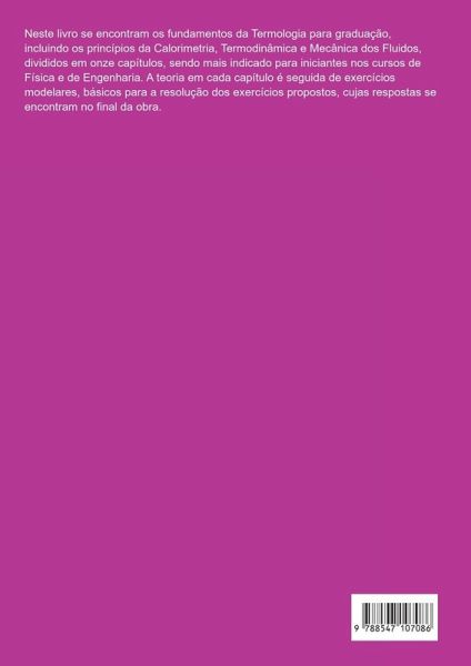 Neste livro se encontram os fundamentos da Termologia para graduação, incluindo os princípios da Calorimetria, Termodinâmica e Mecânica dos Fluidos, divididos em onze capítulos, sendo mais indicado para iniciantes nos cursos de Física e de Engenharia. A teoria em cada capítulo é seguida de exercícios modelares, básicos para a resolução dos exercícios propostos, cujas respostas se encontram no final da obra.