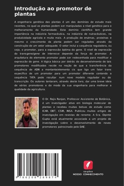 A engenharia genética das plantas é um dos domínios de estudo mais recentes, no qual as plantas podem ser manipuladas a nível genético para o melhoramento da humanidade. Este domínio científico tem grande importância na indústria farmacêutica, na indústria de nutracêuticos, na produtividade agrícola e muito mais. A produção de enzimas, proteínas e mesmo o crescimento da planta podem ser regulados através da construção de um vetor adequado. O vetor inclui a sequência reguladora, ou seja, o promotor, para a expressão óptima do gene. O nível de expressão do transgene/gene de interesse depende da força do promotor. A arquitetura do elemento promotor pode ser redesenhada para modificar a expressão do gene. A lógica básica por detrás do desenvolvimento de tais promotores modificados reside na noção de que a transferência da sequência de ADN a montante/elemento cis que liga um fator trans específico de um promotor para um promotor diferente contendo a sequência TATA pode resultar num novo modelo regulador ou de transcrição. Os autores tentaram, através deste livro, dar uma breve ideia de vários promotores e do modo da sua engenharia para melhorar a qualidade da agricultura.