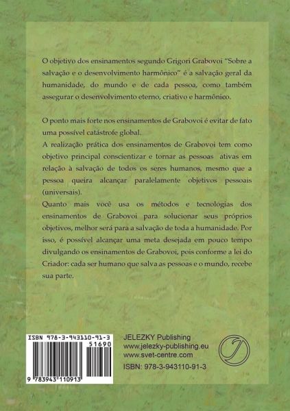 O objetivo dos ensinamentos segundo Grigori Grabovoi "Sobre a salvação e o desenvolvimento harmônico" é a salvação geral da humanidade, do mundo e de cada pessoa, como também assegurar o desenvolvimento eterno, criativo e harmônico. O ponto mais forte nos ensinamentos de Grabovoi é evitar de fato uma possível catástrofe global. A realização prática dos ensinamentos de Grabovoi tem como objetivo principal conscientizar e tornar as pessoas ativas em relação à salvação de todos os seres humanos, mesmo que a pessoa queira alcançar paralelamente objetivos pessoais (universais). Quanto mais você usa os métodos e tecnologias dos ensinamentos de Grabovoi para solucionar seus próprios objetivos, melhor será para a salvação de toda a humanidade. Por isso, é possível alcançar uma meta desejada em pouco tempo divulgando os ensinamentos de Grabovoi, pois conforme a lei do Criador: cada ser humano que salva as pessoas e o mundo, recebe sua parte.