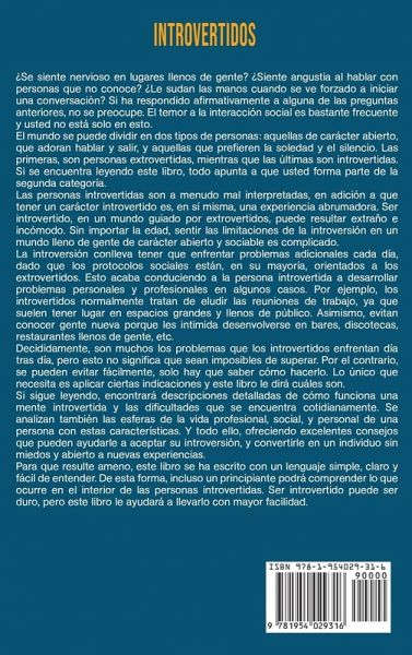 Si desea socializar con confianza en sí mismo, pero siente que su carácter introvertido le está bloqueando, siga leyendo. ¿Está cansado de sentirse incomprendido por culpa de su introversión? ¿Ha intentado mostrarse más sociable, pero siente que nada le funciona de forma permanente? ¿Quiere desprenderse de todos los miedos sociales y estereotipos, y descubrir consejos útiles que pueden ayudarle? Si ha respondido de una forma afirmativa, se encuentra en el lugar adecuado. Como descubrirá en este libro, sentirse seguro de sí mismo en público no tiene por qué ser complicado, incluso si no tuvo éxito con los métodos que intentó aplicar anteriormente. En realidad, es más fácil de lo que parece. Numerosos estudios a lo largo de los años han venido a demostrar que ser introvertido es perfectamente natural y debería asimilarse y sentirse como tal. Los expertos aseguran que las personas introvertidas pueden llegar a ser excelentes líderes, lo que significa que usted puede desarrollar su confianza social sin necesidad de sacrificar su personalidad introvertida. Este es un pequeño avance de lo que podrá descubrir en su lectura:14 maneras de vencer la introversión Cuatro hechos que debería conocer sobre introvertidos famosos Por qué tratar de convertirse en extrovertido es contraproducente, y qué hacer al respecto Cinco bulos acerca del liderazgo en introvertidos Cómo conseguir ahorrar tiempo, cambiando un simple gesto de su rutina Un truco interesante que usan los introvertidos famosos (como Bill Gates), muy útil para sentirse más confiado y resuelto El mayor error que la sociedad comete con los introvertidos Las cinco mejores recomendaciones para ayudarle en su contribución para mejorar el mundo ¡Y mucho, mucho más! Imagine ahora, por un momento, la agradable sensación de poseer seguridad en sí mismo, y cómo reaccionaría su familia y amigos al ser testigos de su cambio. Incluso si, además de su introversión, siente que no se adapta bien en los entornos sociales, puede superar todos estos obstáculos con esta guía. ¡Este libro le ayudará a descubrir y entender a los introvertidos!