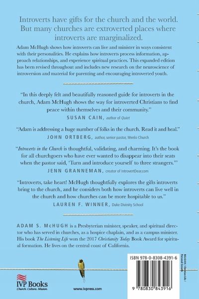 Introverts have gifts for the church and the world. But many churches tend to be extroverted places where introverts are marginalized. Some Christians end up feeling like it's not as faithful to be an introvert.Adam McHugh shows how introverts can live and minister in ways consistent with their personalities. He explains how introverts and extroverts process information and approach relationships differently and how introverts can practice Christian spirituality in ways that fit who they are. With practical illustrations from church and parachurch contexts, McHugh offers ways for introverts to serve, lead, worship, and even evangelize effectively.Introverts in the Church is essential reading for any introvert who has ever felt out of place, as well as for church leaders who want to make their churches more welcoming to introverts. This expanded edition has been revised throughout and includes new research on the neuroscience of introversion and material for parenting and encouraging introverted youth. Discover God's call and empowerment to thrive as an introvert, for the sake of the church and kingdom.