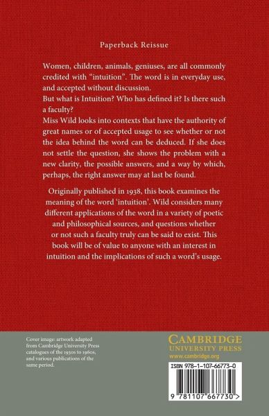 Originally published in 1938, this book examines the meaning of the word 'intuition'. Wild considers many different applications of the word in a variety of poetic and philosophical sources, and questions whether or not such a faculty truly can be said to exist. This book will be of value to anyone with an interest in intuition and the implications of such a word's usage.