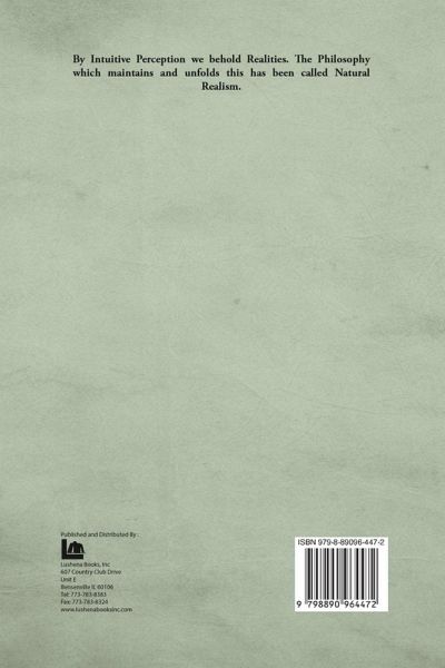 By Intuitive Perception we behold Realities. The Philosophy which maintains and unfolds this, has been called "Natural Realism." But it is evident that the way, in which it has been hitherto presented, is characterized by numerous inconsistencies, and is unsatisfactory, and that there is need of a restatement of the Doctrine, that it may be free from inherent weakness, which exposes it to attacks by which it may be overthrown. The Substance, given in this Book, is that which I have received from the eminent men, with whose teachings I have become familiar, which has been assimilated and wrought upon within my own mind, and which fashioned anew, interwoven with personal observations, made through a course of many years, is now given forth in forms, which seem to me to be the real Truth, freed from the errors and weakness, which have hitherto prevailed. Though few quotations have been made, it is fully acknowledged that the Exposition of Intuitive Perception and Natural Realism, which is given, could never have been written, but for the thought and work and the gathered and garnered material of those who have labored in the varied fields of Philosophic and Scientific inquiry. The Book may be designated as a New Contribution to the unfolding and establishment of Familiar Truths; a Philosophy of Intuitive Perception and Natural Realism, so fashioned and expressed, that all may understand it, and blended harmoniously with the Testimony of Consciousness, as interpreted by all men. Natural Realism, properly presented, is Truth unassailable; it has the Infallibility of Infallible Consciousness, so far as it is a true exposition of its Testimony.