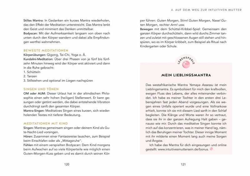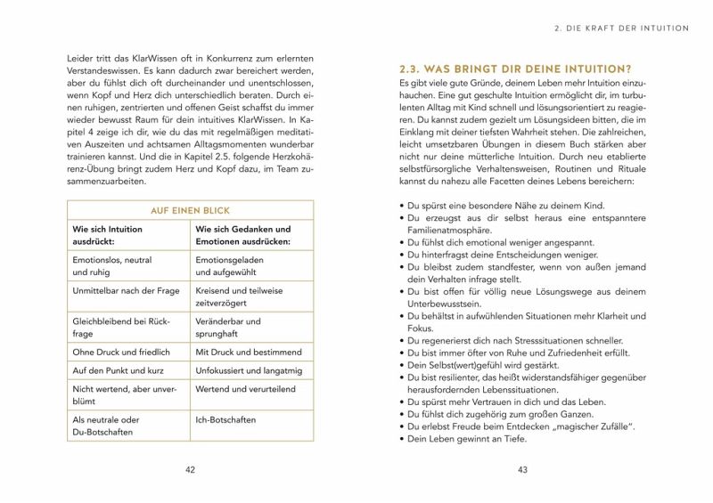 spannendes Hintergrundwissen zur weiblichen Intuitionwirksame Entspannungstechniken zur Lösung mentaler Blockadenviele einfache Achtsamkeitsübungen, die sich auch in einen stressigen Schwangerschafts- und Mama-Alltag integrieren lassen und mit denen Frauen wieder in Verbindung zu sich selbst treten könnenaugenöffnende Selbstreflexionen, die Frauen wieder klar sehen und spüren lassen, welche Entscheidungen für sie und ihr Kind die richtigen sind