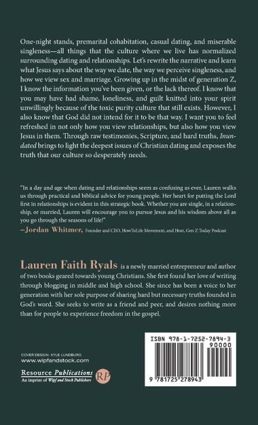 One-night stands, premarital cohabitation, casual dating, and miserable singleness--all things that the culture where we live has normalized surrounding dating and relationships. Let's rewrite the narrative and learn what Jesus says about the way we date, the way we perceive singleness, and how we view sex and marriage. Growing up in the midst of generation Z, I know the information you've been given, or the lack thereof. I know that you may have had shame, loneliness, and guilt knitted into your spirit unwillingly because of the toxic purity culture that still exists. However, I also know that God did not intend for it to be that way. I want you to feel refreshed in not only how you view relationships, but also how you view Jesus in them. Through raw testimonies, Scripture, and hard truths, Inundated brings to light the deepest issues of Christian dating and exposes the truth that our culture so desperately needs.