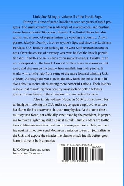 This is volume two of the Inuvik Saga. It is a story of a country formed by Native Americans in the northwest of North America before the great white expansion of white people east of the Mississippi River began to flood into the west. By chance a young Scotsman is abandoned by his ship and is taken in by a native tribe. After the language barrier is conquered he realizes the people there are just as intelligent as any of his countrymen and begins to teach the children to read and write. The children, and many of the adults as well, are endlessly curious and knowledge spreads like wildfire. It is not long before their territory is coveted by white settlers and an army is sent to pacify them. War ensues and the Inuvikans manage a narrow victory, but more conflict is on the way and they now realize their future will be hard won with blood and sacrifice. This book continues that story.