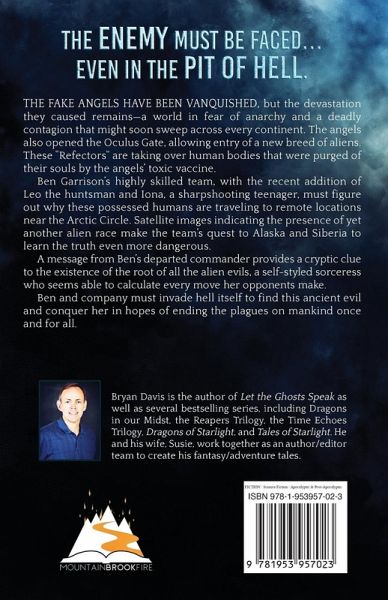 The enemy must be faced...even in the pit of hell. The fake angels have been vanquished, but the devastation they caused remains-a world in fear of anarchy and a deadly contagion that might soon sweep across every continent. The angels also opened the Oculus Gate, allowing entry of a new breed of aliens. These "Refectors" are taking over human bodies that were purged of their souls by the angels' toxic vaccine. Ben Garrison's highly skilled team, with the recent addition of Leo the huntsman and Iona, a sharpshooting teenager, must figure out why these possessed humans are traveling to remote locations near the Arctic Circle. Satellite images indicating the presence of yet another alien race make the team's quest to Alaska and Siberia to learn the truth even more dangerous. A message from Ben's departed commander provides a cryptic clue to the existence of the root of all the alien evils, a self-styled sorceress who seems able to calculate every move her opponents make. Ben and company must invade hell itself to find this ancient evil and conquer her in hopes of ending the plagues on mankind once and for all.