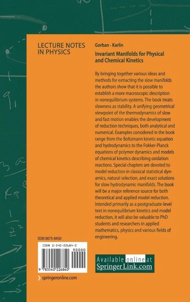 By bringing together various ideas and methods for extracting the slow manifolds, the authors show that it is possible to establish a more macroscopic description in nonequilibrium systems. The book treats slowness as stability. A unifying geometrical viewpoint of the thermodynamics of slow and fast motion enables the development of reduction techniques, both analytical and numerical. Examples considered in the book range from the Boltzmann kinetic equation and hydrodynamics to the Fokker-Planck equations of polymer dynamics and models of chemical kinetics describing oxidation reactions. Special chapters are devoted to model reduction in classical statistical dynamics, natural selection, and exact solutions for slow hydrodynamic manifolds. The book will be a major reference source for both theoretical and applied model reduction. Intended primarily as a postgraduate-level text in nonequilibrium kinetics and model reduction, it will also be valuable to PhD students and researchers in applied mathematics, physics and various fields of engineering.