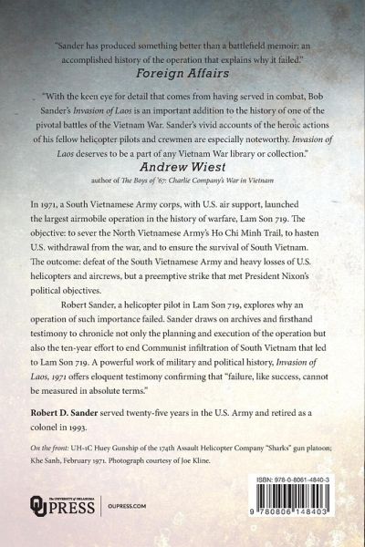 In 1971 a South Vietnamese Army corps, with US air support, launched the largest airmobile operation in the history of warfare, Lam Son 719. The objective: to sever the North Vietnamese Army's main logistical artery. Robert Sander, a helicopter pilot in Lam Son 719, explores why an operation of such importance failed.