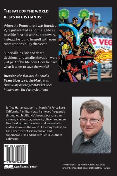 Jeffrey Harlan is an independent author of superhero fiction and the founder of Confluent Press, an independent publishing imprint that provides editorial and design services to self-published and independent authors.In 2012, he began publishing The Protectorate, an independent comic book series about a team of teenaged superheroes in Las Vegas, before realizing that not only was drawing an ongoing comic book much more difficult than he'd expected, he also enjoyed writing the stories far more than he did drawing them. In 2021, inspired by other prose superhero novels he'd read, he self-published Donner und Blitzkrieg, a prequel to The Protectorate that focused on that world's first superheroes. He soon followed that up with three novellas, adapted from the four completed issues of The Protectorate. The novellas greatly expanded on the original comics and completed the storyline from the incomplete and unpublished fifth issue. In 2022, Jeffrey edited the novellas into a single volume, which he published as Invasion.A military brat, Jeffrey moved frequently throughout his life. He's been a journalist, an airman, an educator, a security officer, and more. He's lived in three countries and seven states, and has traveled the world. A lifelong Trekkie, he has a deep love of science fiction and superheroes. He lives in Southern California's San Bernardino Mountains with his wife, Megan, their dog, Lucky, and their cats, Dusty and Snowball.