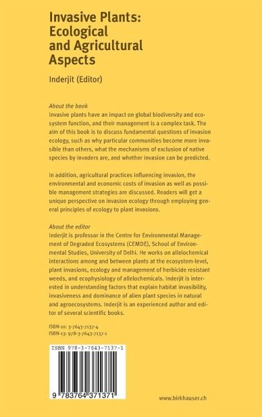 Invasive plants have an impact on global biodiversity and ecosystem function, and their management is a complex task. The aim of this book is to discuss fundamental questions of invasion ecology, such as why particular communities become more invasible than others, what the mechanisms of exclusion of native species by invaders are, and whether invasion can be predicted. In addition, agricultural practices influencing invasion, the environmental and economic costs of invasion as well as possible management strategies are discussed. Readers will get a unique perspective on invasion ecology…mehr