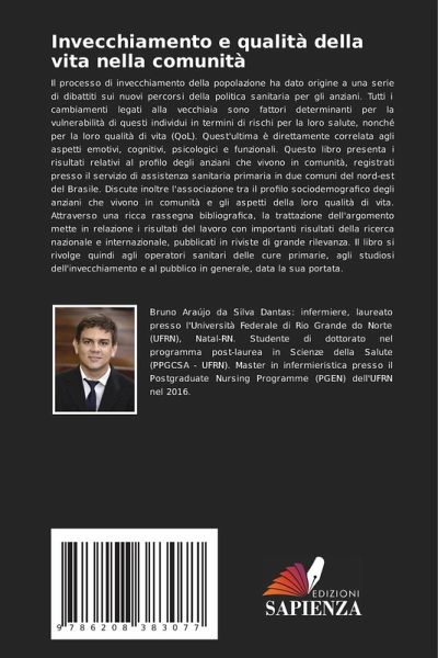 Il processo di invecchiamento della popolazione ha dato origine a una serie di dibattiti sui nuovi percorsi della politica sanitaria per gli anziani. Tutti i cambiamenti legati alla vecchiaia sono fattori determinanti per la vulnerabilità di questi individui in termini di rischi per la loro salute, nonché per la loro qualità di vita (QoL). Quest'ultima è direttamente correlata agli aspetti emotivi, cognitivi, psicologici e funzionali. Questo libro presenta i risultati relativi al profilo degli anziani che vivono in comunità, registrati presso il servizio di assistenza sanitaria primaria in due comuni del nord-est del Brasile. Discute inoltre l'associazione tra il profilo sociodemografico degli anziani che vivono in comunità e gli aspetti della loro qualità di vita. Attraverso una ricca rassegna bibliografica, la trattazione dell'argomento mette in relazione i risultati del lavoro con importanti risultati della ricerca nazionale e internazionale, pubblicati in riviste di grande rilevanza. Il libro si rivolge quindi agli operatori sanitari delle cure primarie, agli studiosi dell'invecchiamento e al pubblico in generale, data la sua portata.