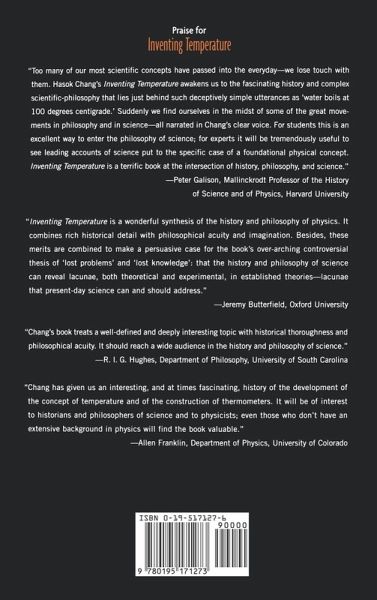 In "Inventing Temperature", Chang takes a historical and philosophical approach to examine how scientists were able to use scientific methods to test the reliability of thermometers; how they measured temperature beyond the reach of thermometers; and how they came to measure the reliability and accuracy of these instruments without a circular reliance on the instruments themselves. Chang discusses simple epistemic and technical questions about these instruments, which in turn lead to more complex issues about the solutions that were developed.