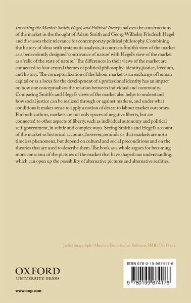 Inventing the Market: Smith, Hegel, and Political Theory analyses the constructions of the market in the thought of Adam Smith and Georg Wilhelm Friedrich Hegel and discusses their relevance for contemporary political philosophy. Combining the history of ideas with systematic analysis, it contrasts Smith's view of the market as a benevolently designed 'contrivance of nature' with Hegel's view of the market as a 'relic of the state of nature.' The differences