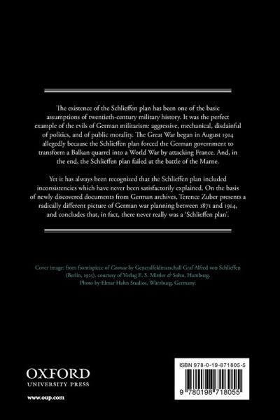 The existence of the Schlieffen plan has been one of the basic assumptions of twentieth-century military history. It was the perfect example of the evils of German militarism: aggressive, mechanical, disdainful of politics and of public morality. The Great War began in August 1914 allegedly because the Schlieffen plan forced the German government to transform a Balkan quarrel into a World War by attacking France. And, in the end, the Schlieffen plan failed at the battle of the Marne. Yet it has always been recognized that the Schlieffen plan included inconsistencies which have never been satisfactorily explained. On the basis of newly discovered documents from German archives, Terence Zuber presents a radically different picture of German war planning between 1871 and 1914, and concludes that, in fact, there never really was a 'Schlieffen plan'.
