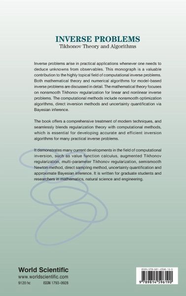 Inverse problems arise in practical applications whenever one needs to deduce unknowns from observables. This monograph is a valuable contribution to the highly topical field of computational inverse problems. Both mathematical theory and numerical algorithms for model-based inverse problems are discussed in detail. The mathematical theory focuses on nonsmooth Tikhonov regularization for linear and nonlinear inverse problems. The computational methods include nonsmooth optimization algorithms, direct inversion methods and uncertainty quantification via Bayesian inference. The book offers a comprehensive treatment of modern techniques, and seamlessly blends regularization theory with computational methods, which is essential for developing accurate and efficient inversion algorithms for many practical inverse problems. It demonstrates many current developments in the field of computational inversion, such as value function calculus, augmented Tikhonov regularization, multi-parameter Tikhonov regularization, semismooth Newton method, direct sampling method, uncertainty quantification and approximate Bayesian inference. It is written for graduate students and researchers in mathematics, natural science and engineering.