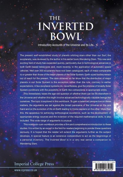 The present well-established study of planets orbiting stars other than our Sun, the exoplanets, was reviewed by the author in his earlier book Wandering Stars. This new and exciting field of study has expanded quickly, particularly due to technological advances in both Earth-based telescopes and, more recently, in the application of automatic space vehicles. Well over 300 exoplanets have now been catalogued, each of mass comparable to or greater than those of the major planets of the Solar System. Earth-sized bodies remain out of reach for the present. The data obtained so far show that the distribution of major planets in our Solar System is the exception rather than the rule, contrary to earlier expectations. A few exoplanet systems do, nevertheless, give the promise of broadly Solar System conditions with the possibility of Earth-like components in appropriate orbits. This immediately raises the age-old question of whether there can be life elsewhere in the Universe and whether this might involve advanced technologically-capable beings like ourselves. The topic is explored in this workbook. To gain a balanced perspective on these matters, the arguments are set against the broad panorama of the Universe on the one hand and on the evolution of life on Earth leading to Homo sapiens on the other. More than this, the apparatus for achieving technological excellence, such as the development of appropriate energy sources and the invention of the required mathematical skills, is also included. This wide range of arguments is unusual. This notebook-cum-workbook provides a firm and comprehensive introduction to these studies. It is written by an expert in the field for readers beginning to ponder these questions seriously. It is hoped that the reader will extend the arguments further as the subject develops. A special feature is an extensive compendium to act as the beginnings of a personal inventory. The Inverted Bowl is in a very real sense a companion to Wandering Stars.