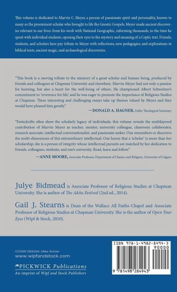 This volume is dedicated to Marvin C. Meyer, a person of passionate spirit and personality, known to many as the preeminent scholar who brought to life the Gnostic Gospels. Meyer made ancient discoveries relevant to our lives: from his work with National Geographic, informing thousands, to the time he spent with individual students, opening their eyes to the mystery and meaning of a Coptic text. Friends, students, and scholars here pay tribute to Meyer with reflections, new pedagogies, and explorations in biblical texts, ancient magic, and archaeological discoveries.
