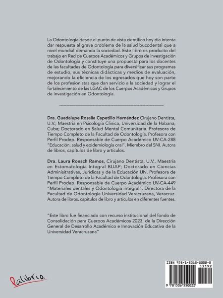 La Odontología desde el punto de vista científico hoy día intenta dar respuesta al grave problema de la salud bucodental que a nivel mundial demanda la sociedad. Este libro es producto del trabajo en Red de Cuerpos Académicos y Grupos de investigación de Odontología y constituye una propuesta para los docentes de las facultades de Odontología para diversificar sus programas de estudio, sus técnicas didácticas y medios de evaluación, mejorando la eficiencia de los egresados que hoy son parte de los profesionistas que dan servicio a la sociedad y lograr el fortalecimiento de las LGAC de los Cuerpos Académicos y Grupos de investigación en Odontología.