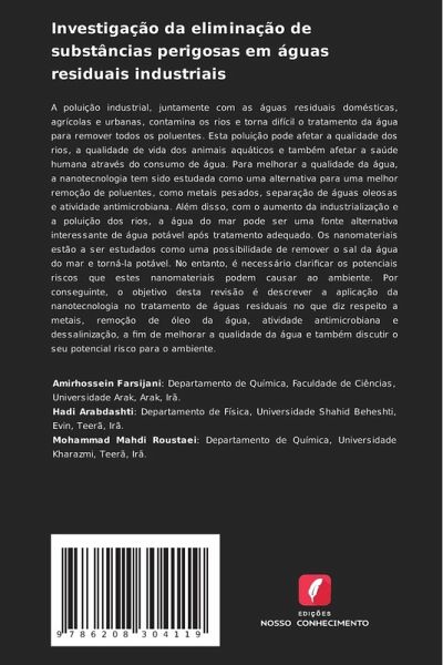 A poluição industrial, juntamente com as águas residuais domésticas, agrícolas e urbanas, contamina os rios e torna difícil o tratamento da água para remover todos os poluentes. Esta poluição pode afetar a qualidade dos rios, a qualidade de vida dos animais aquáticos e também afetar a saúde humana através do consumo de água. Para melhorar a qualidade da água, a nanotecnologia tem sido estudada como uma alternativa para uma melhor remoção de poluentes, como metais pesados, separação de águas oleosas e atividade antimicrobiana. Além disso, com o aumento da industrialização e a poluição dos rios, a água do mar pode ser uma fonte alternativa interessante de água potável após tratamento adequado. Os nanomateriais estão a ser estudados como uma possibilidade de remover o sal da água do mar e torná-la potável. No entanto, é necessário clarificar os potenciais riscos que estes nanomateriais podem causar ao ambiente. Por conseguinte, o objetivo desta revisão é descrever a aplicação da nanotecnologia no tratamento de águas residuais no que diz respeito a metais, remoção de óleo da água, atividade antimicrobiana e dessalinização, a fim de melhorar a qualidade da água e também discutir o seu potencial risco para o ambiente.